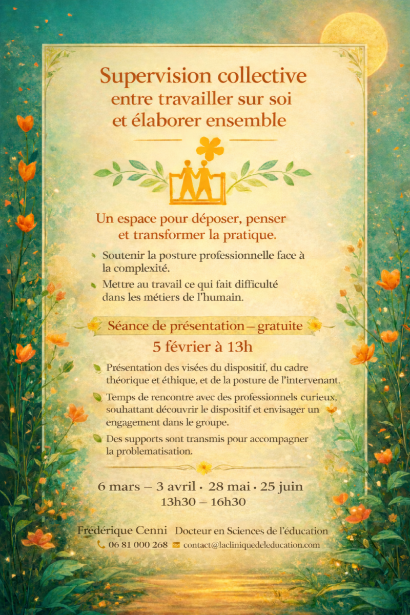 - La sensibilité humaine : Je crois que l’art, la poésie, et les récits ont leur place dans la supervision. Parfois, une métaphore ou un dessin ouvre des portes là où l’analyse rationnelle bute.